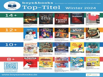 Ausgewählt hat die Top-Titel eine Fachjury aus rund 20 Hochschullehrenden, Deutschlehrkräften sowie Literaturpädagog:innen. Berücksichtigung fanden insgesamt 150 Neuerscheinungen des deutschsprachigen Kinder- und Jugendbuchmarkts von März bis September 2024. Alle Buchempfehlungen von boys & books für den Lesewinter 2024/25 samt Inhaltsangaben, Rezensionen, Leseproben und Tipps für die Leseförderung sind zu finden auf www.boysandbooks.de. Außerdem sämtliche Buchempfehlungen von boys & books seit 2017 – nicht nur sortiert nach Altersstufen, sondern auch nach Genres. Von Abenteuer über Fantasy bis hin zu Science Fiction oder Sport. Und auch wer nach Empfehlungen für Sachbücher, Gamebooks oder Erstleseliteratur sucht, wird auf www.boysandbooks.de fündig.