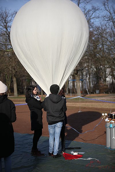 Hoch hinaus geht es beim Projekt „Forschungsmission Stratosphärenballon – Physik am Rande zum Weltall“ des St. Dominikus Mädchengymnasiums Karlsruhe und der Pädagogischen Hochschule Karlsruhe (PHKA). Schülerinnen sowie Lehramtsstudierende der Physik haben am 29. Januar gegen 10.30 Uhr auf dem Engländerplatz in Karlsruhe einen mit 5000 Litern Helium gefüllten Ballon von der Größe eines Kleinwagens in die Stratosphäre aufsteigen lassen. An Bord: eine Forschungssonde mit rund zwei Kilogramm Messausrüstung, um unter anderem Temperatur, Luftdruck, radioaktive Strahlung und CO2-Gehalt zu erfassen.