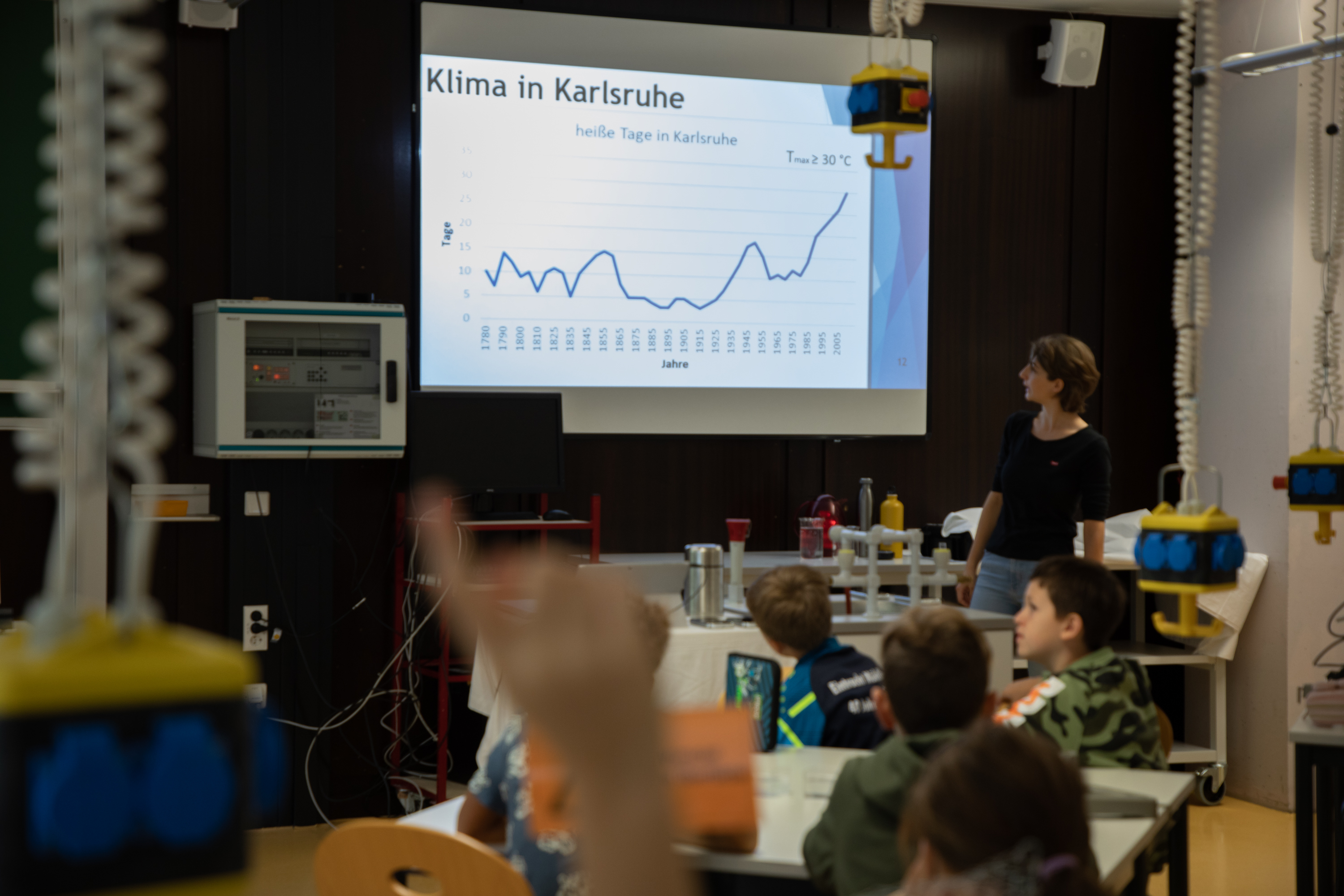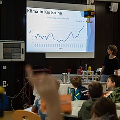 Die Klimadaten der letzten 250 Jahre für Karlsruhe zeigen, dass es immer heißer in Karlsruhe wird. Doch woran liegt das? Gemeinsam mit den Schülern und Schülerinnen werden Experimente durchgeführt, um Einflussfaktoren zu untersuchen, die das Klima auf der Erde beeinflussen. Anhand von Modellen und Experimenten erarbeiten die Schüler:innen Antworten auf die Frage „Warum wird unserer Erde zu warm?“.