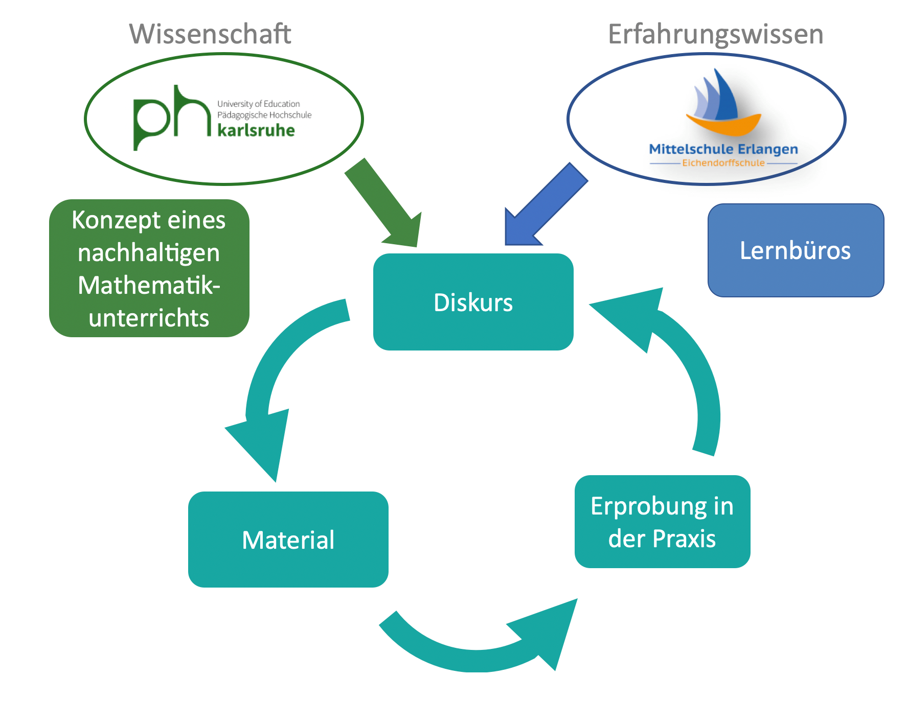 Das gemeinsame Projekt „Professionell Nachhaltig Mathematik Unterrichten“ (ProNaMU) von Pädagogischer Hochschule Karlsruhe (PHKA) und der prämierten Eichendorffschule Erlangen implementiert ein Konzept eines nachhaltigen Mathematikunterrichts in den Klassenstufen 7, 8 und 9. Neben der Erstellung der Materialien im gemeinsamen Dialog zwischen Hochschule und Schule zeichnet die Entwicklung der Lernbegleitung in der Praxis das Konzept aus. Prof. Dr. Mutfried Hartmann (PHKA) und Studienrätin Petra Richter können für Hospitationen, Vorträge oder Workshops zum Konzept und dessen Umsetzung angefragt werden. Hier gibt es weitere Informationen.